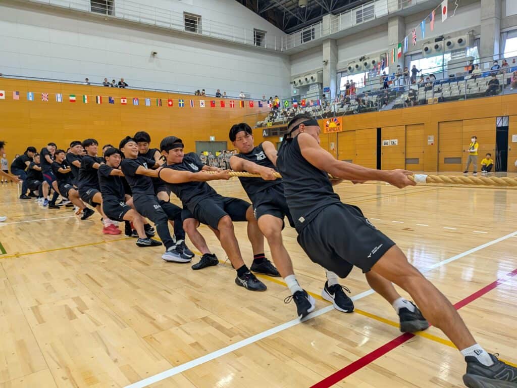 キャンパスカラーも相まって、迫力満点の西神中央。綱引きは優勝!