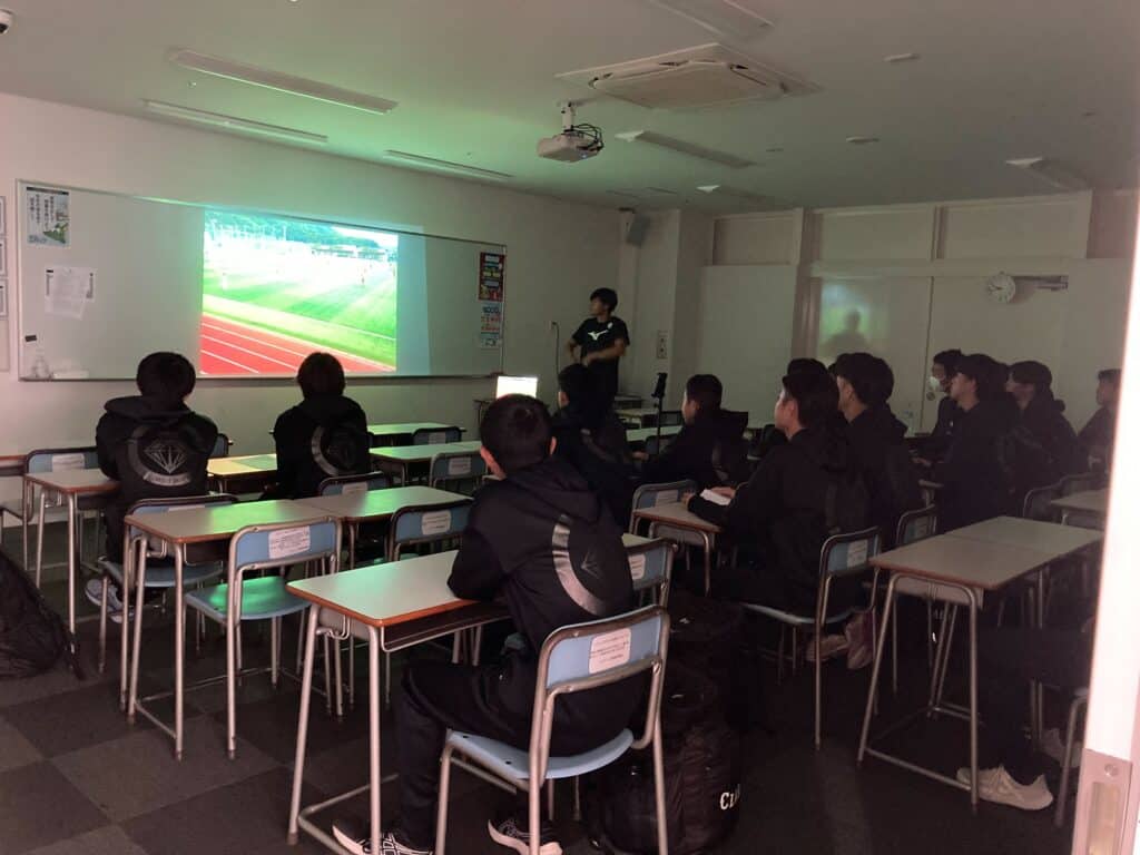 1、2年生は、戦術の授業で自分たちのプレーを見て振り返りを行いました。戦術の時間はいつも超真剣な生徒たちです!