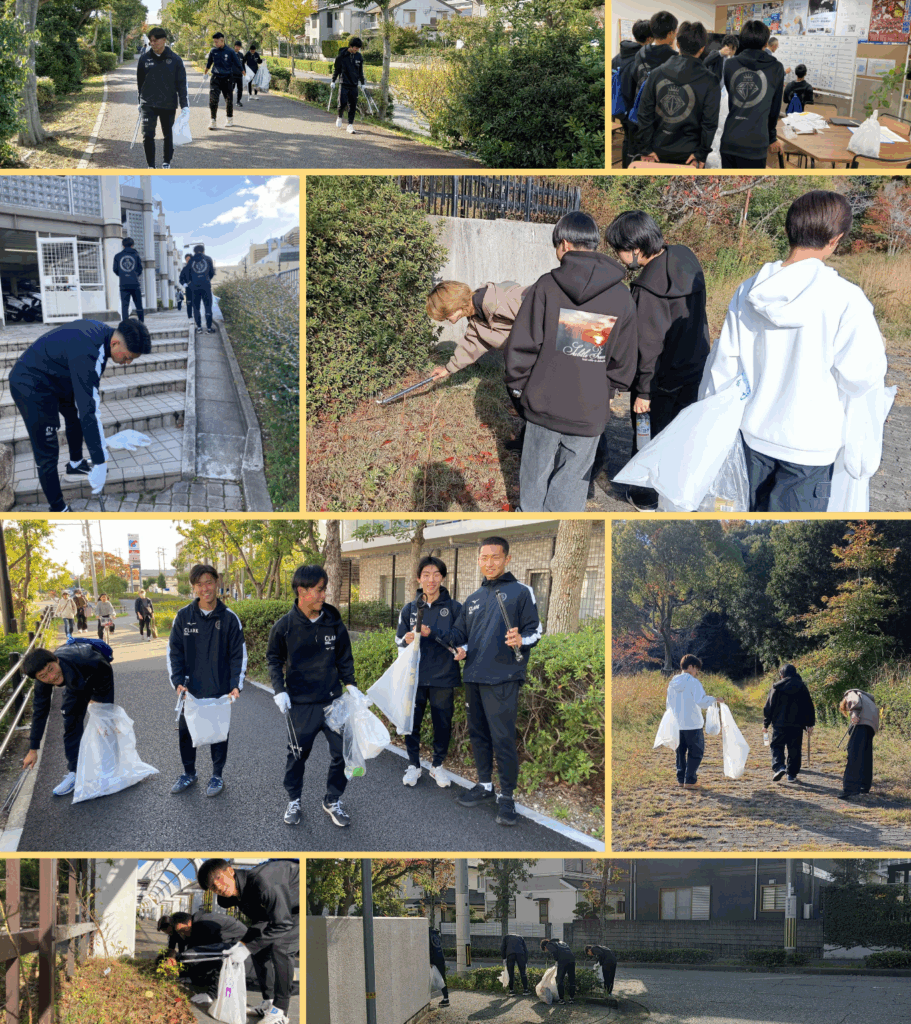 総勢約40名の生徒がチームに分かれ、キャンパス周辺の公園や広場、道路沿いなどでごみ拾いを行いました。「どのチームが一番多く拾えるか」を競い合いながらも、秋晴れの気持ち良い空気を感じつつ笑顔あふれる時間となりました😊