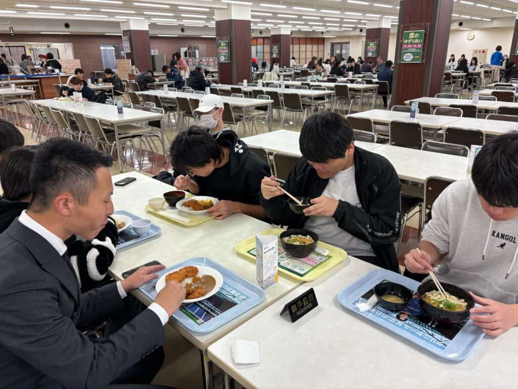 学生食堂にて昼食をとった後、大学生ボランティアによる説明会とキャンパスツアーに参加しました。