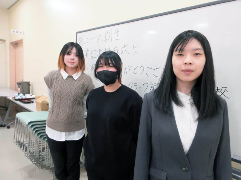 谷岡さん(中、2年)、小松さん(右、1年)