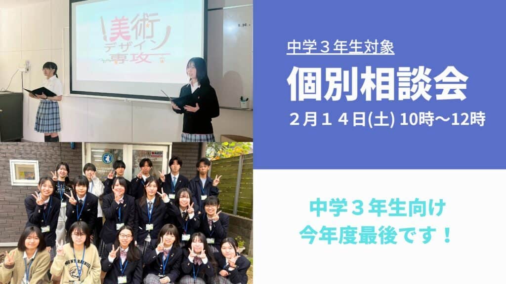 | 8 | 9 個別相談 | 10 個別相談 | 11 | 12 個別相談 | 13 個別相談 | 14 個別相談 学校説明 |