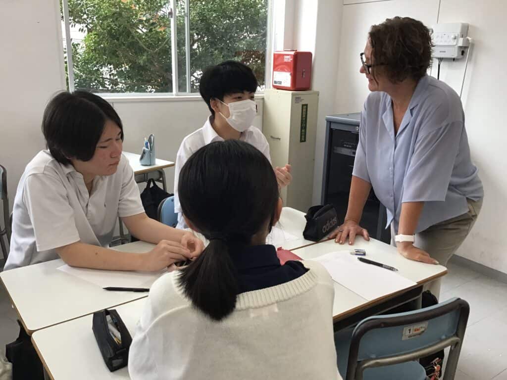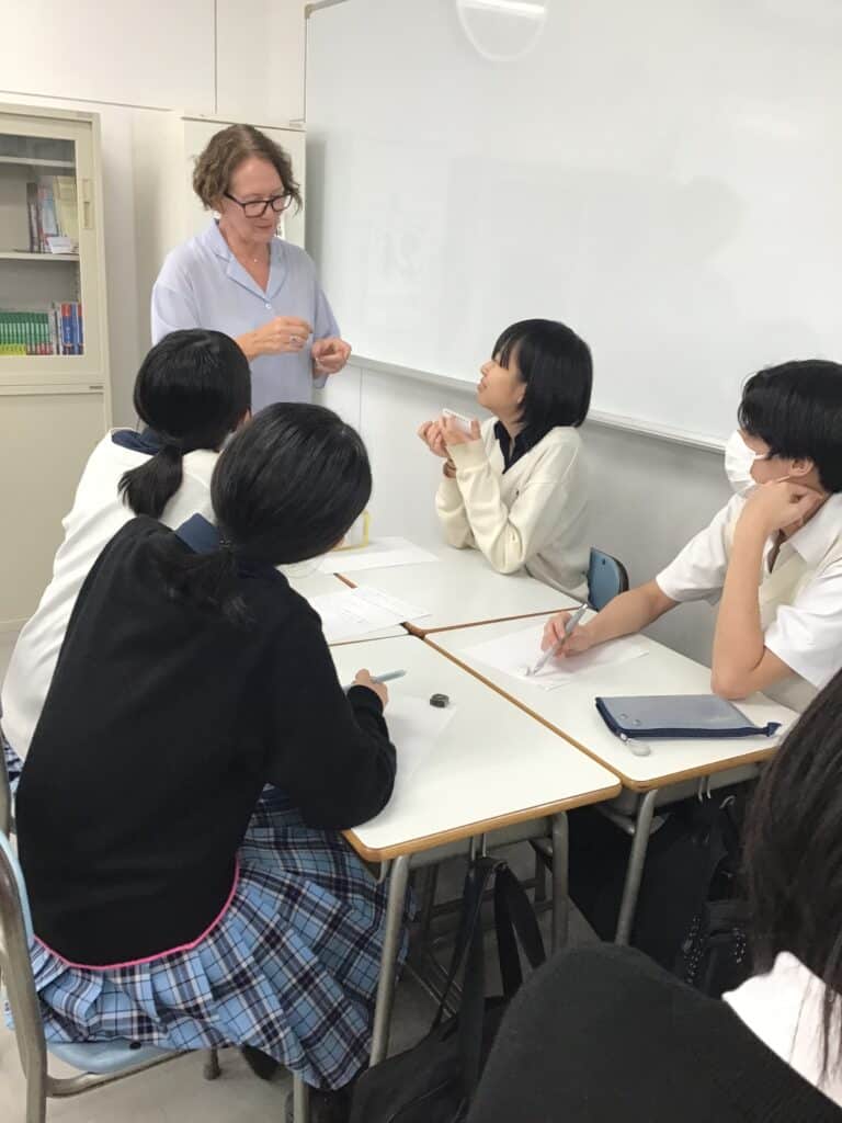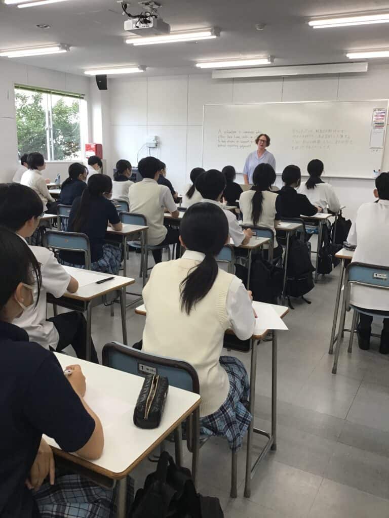 メリンダ先生は、ライフワークとして様々なボランティア活動をされています。ボランティアは、すぐ行動に移せる!そんなヒントをたくさん持っていらっしゃるので、今回は、特別に、国際専攻・総合進学専攻・美術専攻合同でお話を聴きました。