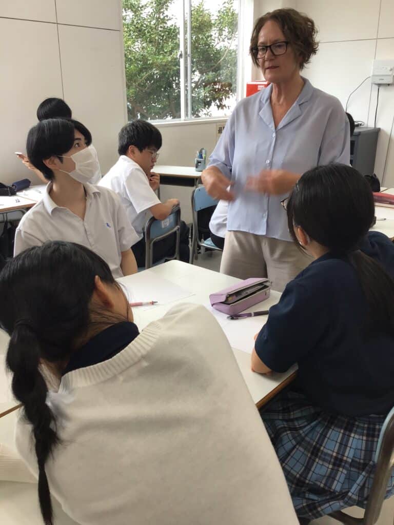 カナダ出身のメリンダ先生は、国際専攻の授業を担当しています。国際専攻の生徒は、英語でSDGsや世界の問題を学んでいます。