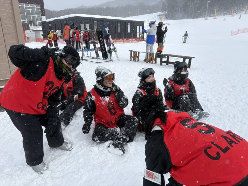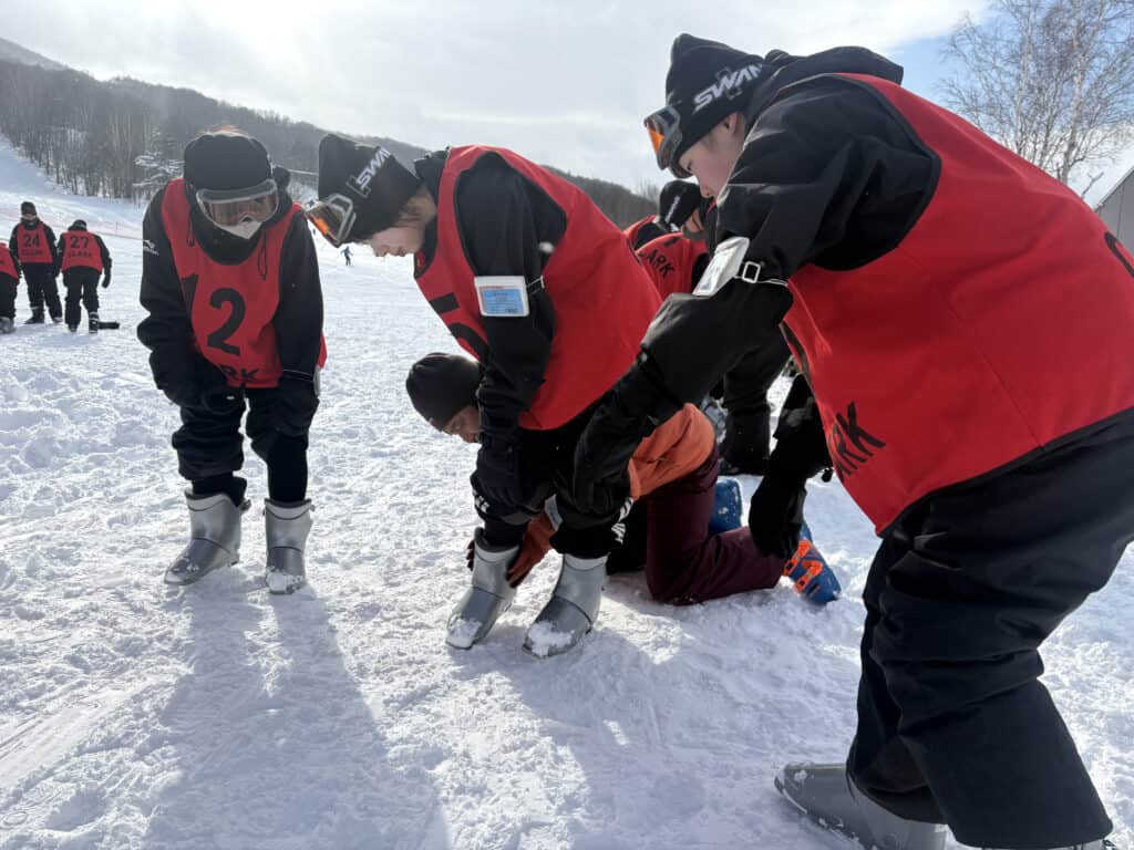 初めてスキーに挑戦する生徒がほとんどで、最初は慎重な様子でしたが、インストラクターの指導のもと、少しずつ滑れるようになっていきました。