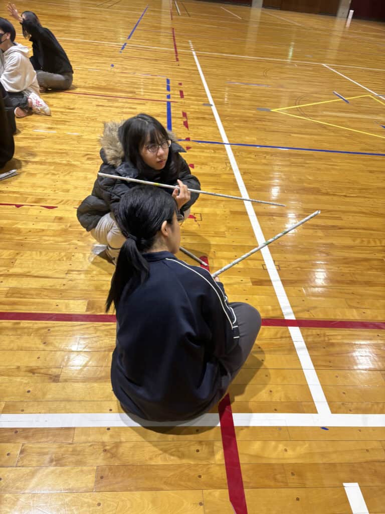 真剣な表情で挑む姿もあれば、思わぬ方向に進んでしまい笑いが起きる場面もあり、笑顔と歓声が絶えない時間となりました。学年全員で一つの活動を楽しむことで、仲間との距離もぐっと縮まったように感じます。