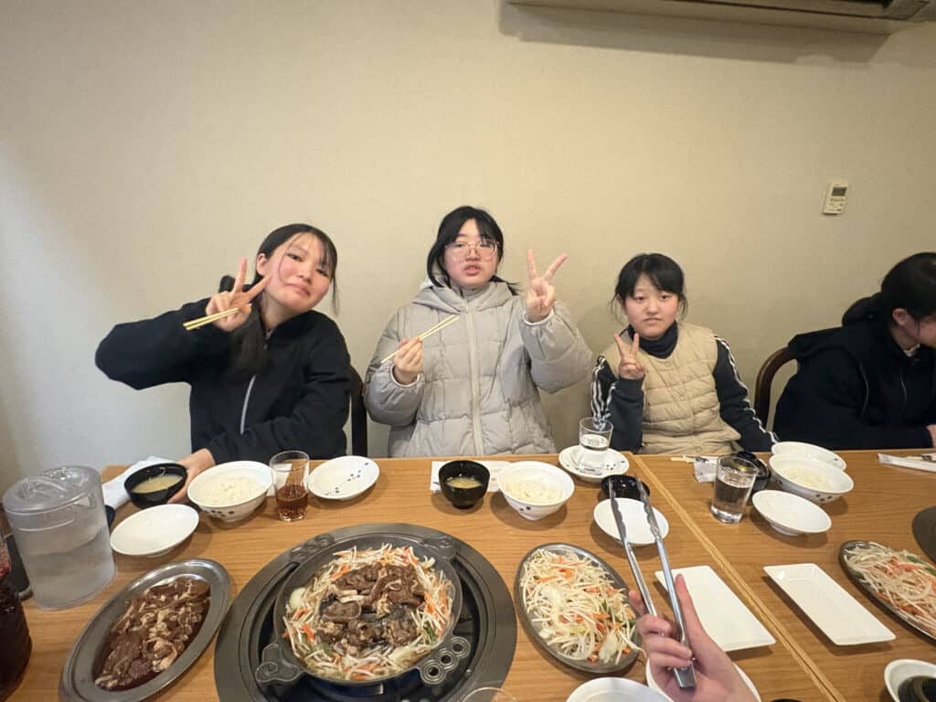 熱々の鉄板で焼いたお肉を、みんなで囲んでいただきました。