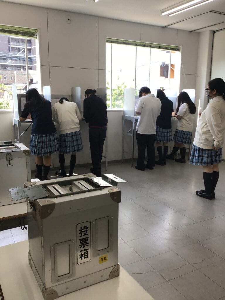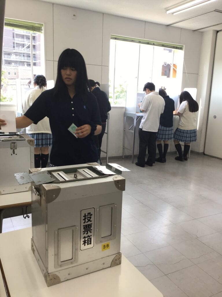 投票には、鹿児島市選挙管理委員会からお借りした記載台と投票箱を使用し、生徒たちは本格的な形式で一票を投じました。
