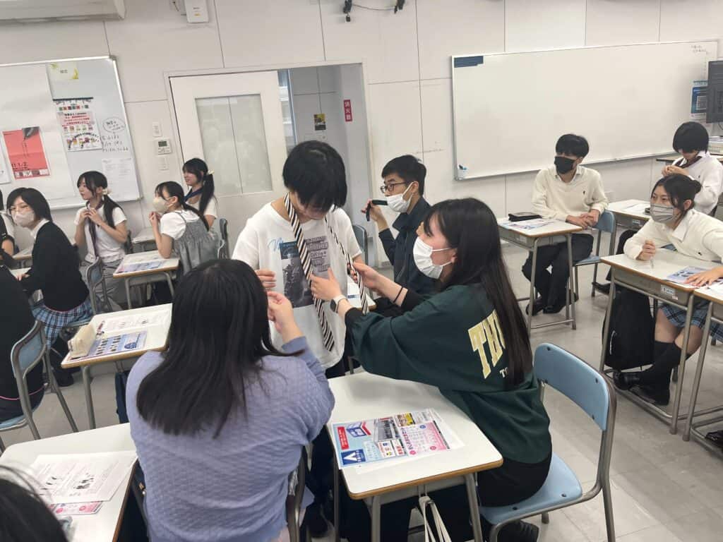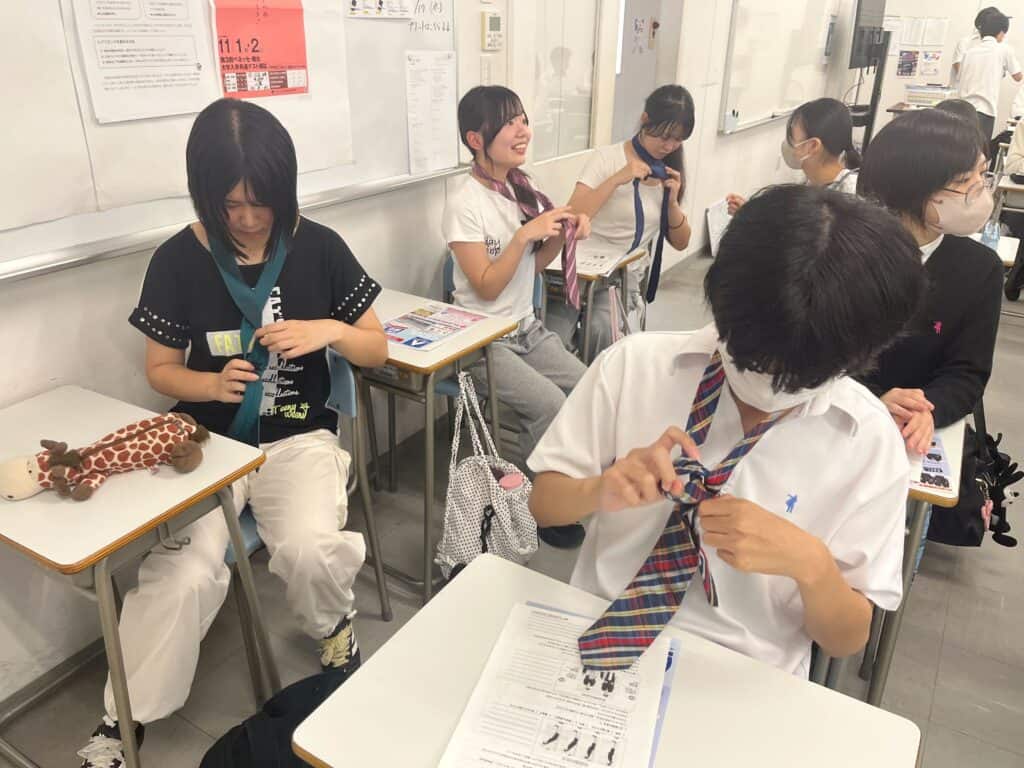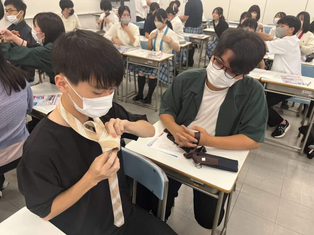 次に、生徒希望者3名がネクタイ最速王決定戦に参加しました。