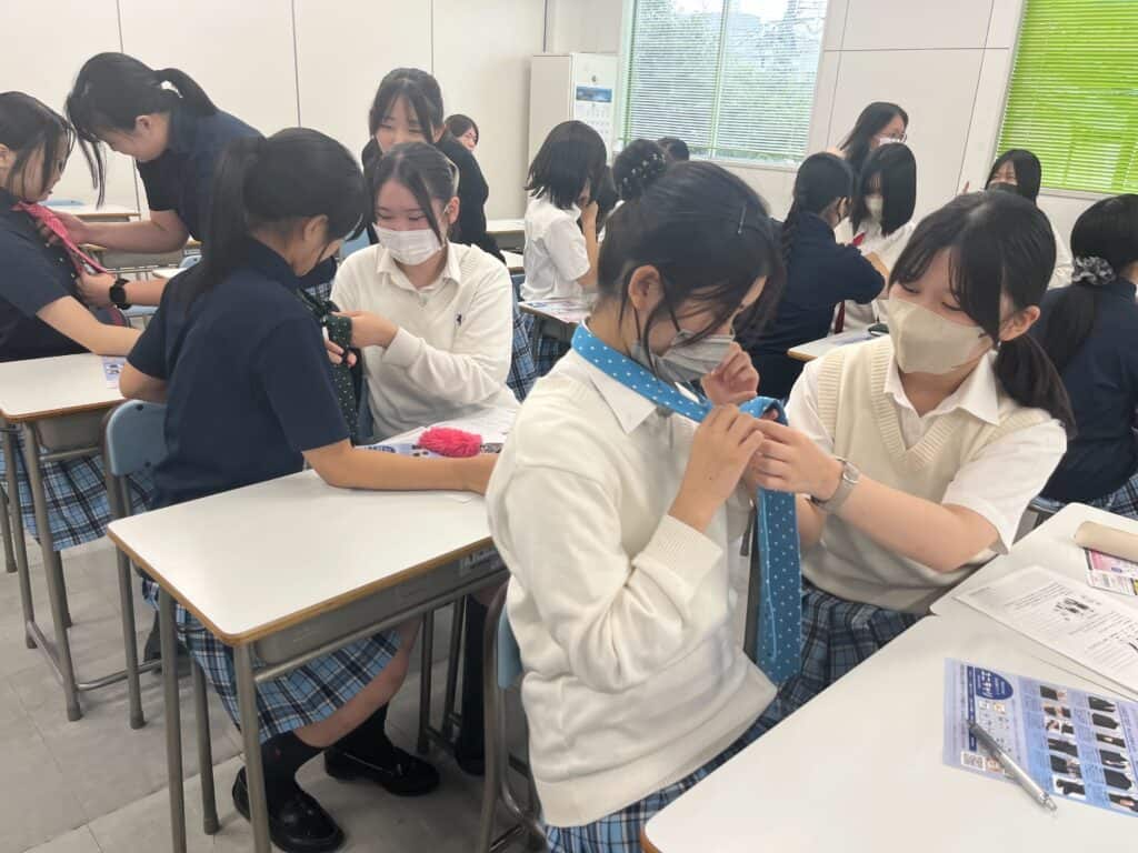 生徒たちは、より良い巻き方、より素早い巻き方を教えていただき、熱心に取り組んでいました。