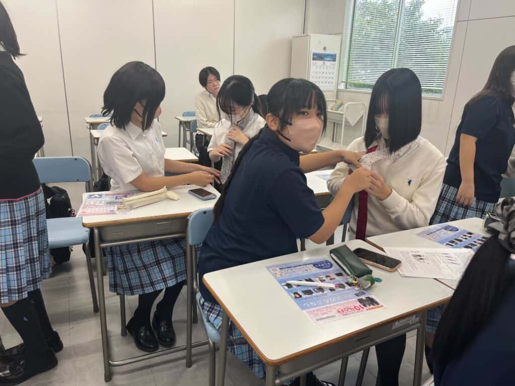 「ビジネスマナー」について学ぶことで、入試の面接や卒業後にマナー面で不利益を被ってほしくない、という思いから実現した特別講義です。