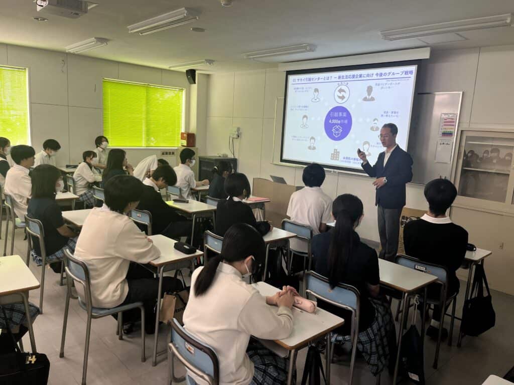 また、運送業界におけるサカイ引越センターの立ち位置と企業理念についてお話しいただきました。特に、来校頂いた方の職歴をお話しいただいた際には、生徒が真剣に耳を傾ける姿が印象的でした。