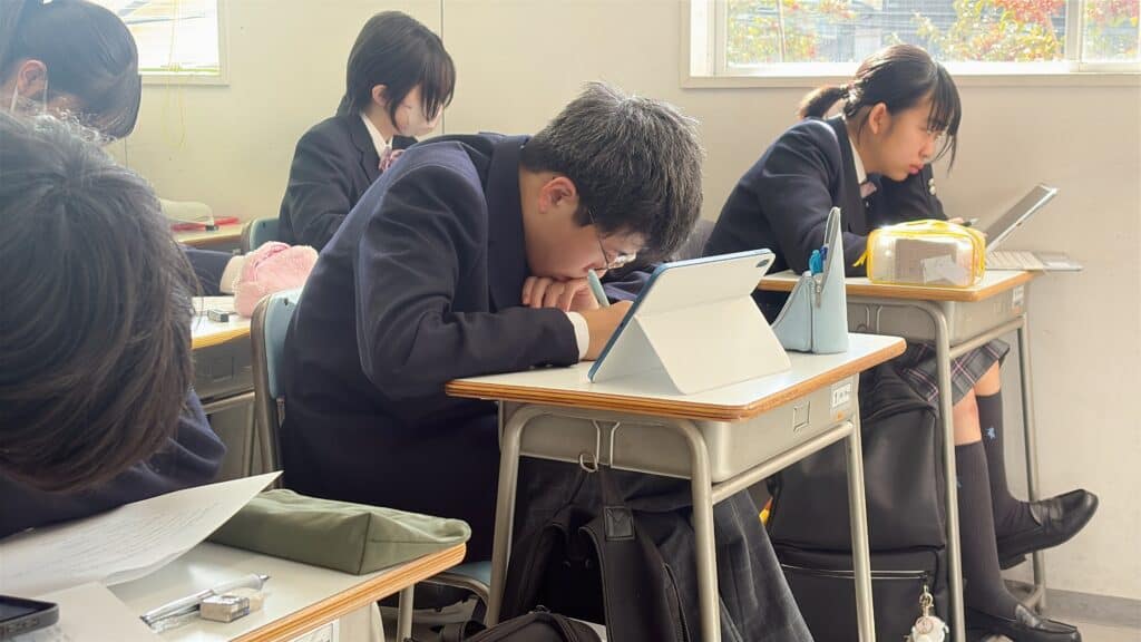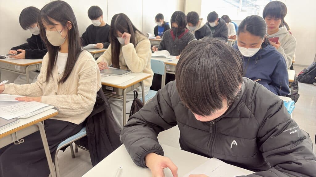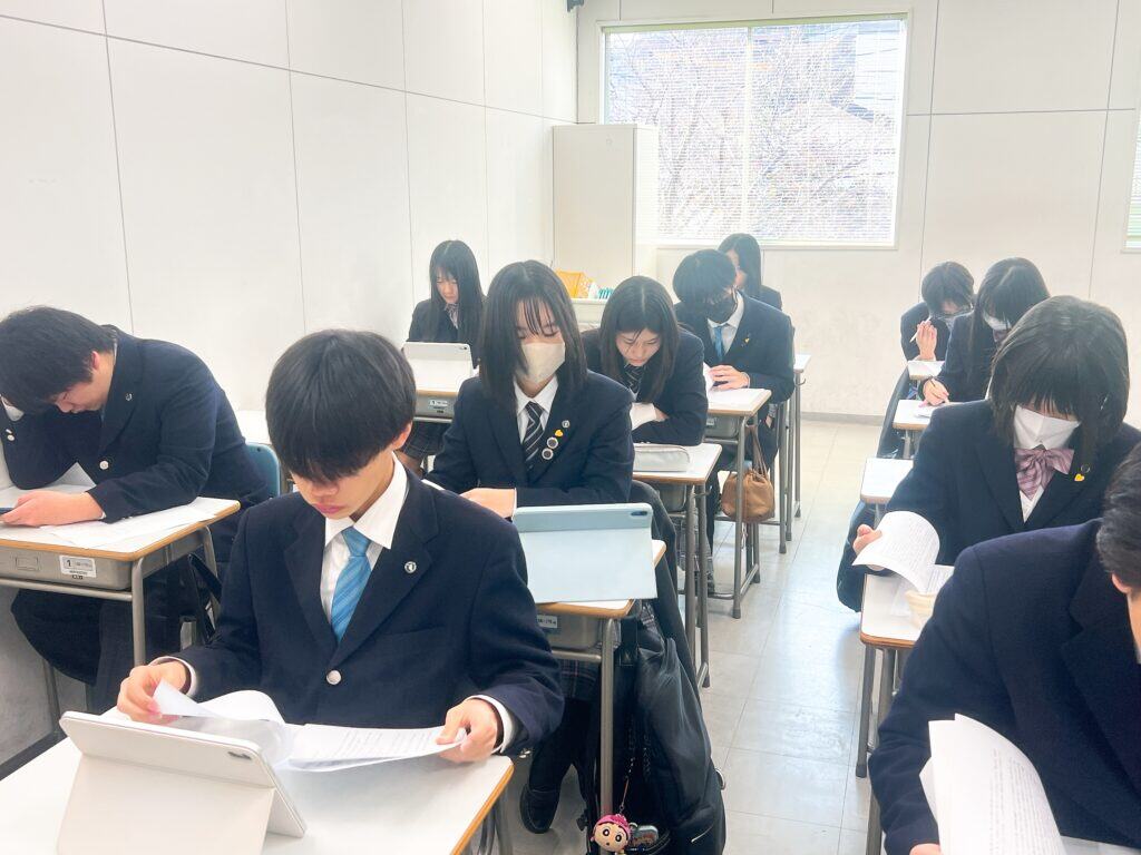 試験前、教室全体が落ち着いた緊張感に包まれていました。