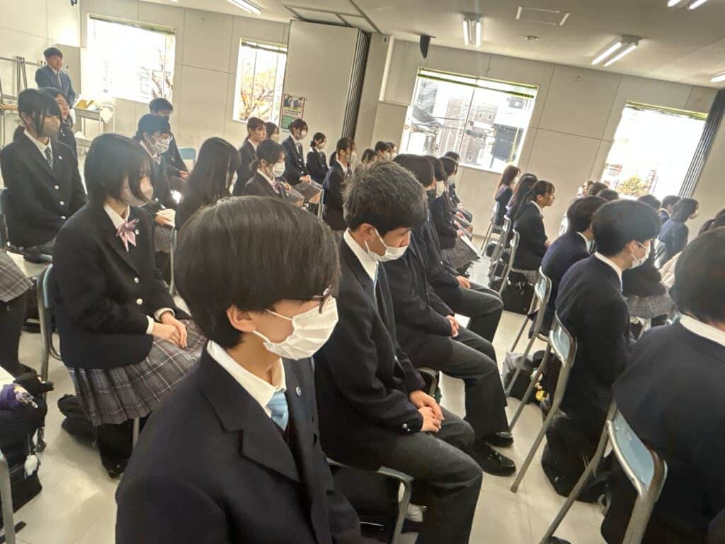 一年の節目となるこの時期、全校生徒が一堂に会し、これまでの学校生活を振り返るとともに、冬休み、そしてその先の進路を見据えた大切な話がありました。