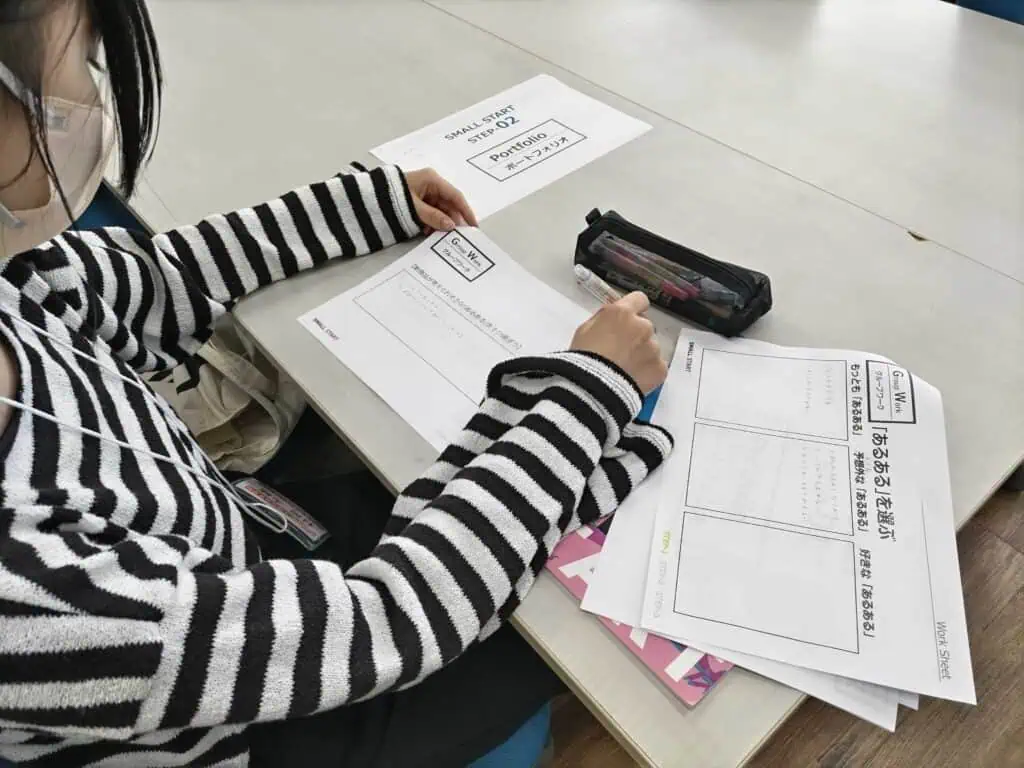 厚木キャンパスでは、教育と探求社の教材である「スモールスタート」を授業に取り入れています。この教材を活用して、「同世代の日常を変える新商品」というテーマを掲げ、生徒自らが日常生活のなかにビジネスの種を発見し、生徒同士で協力しながら、実現性にこだわって新商品を開発していきます。