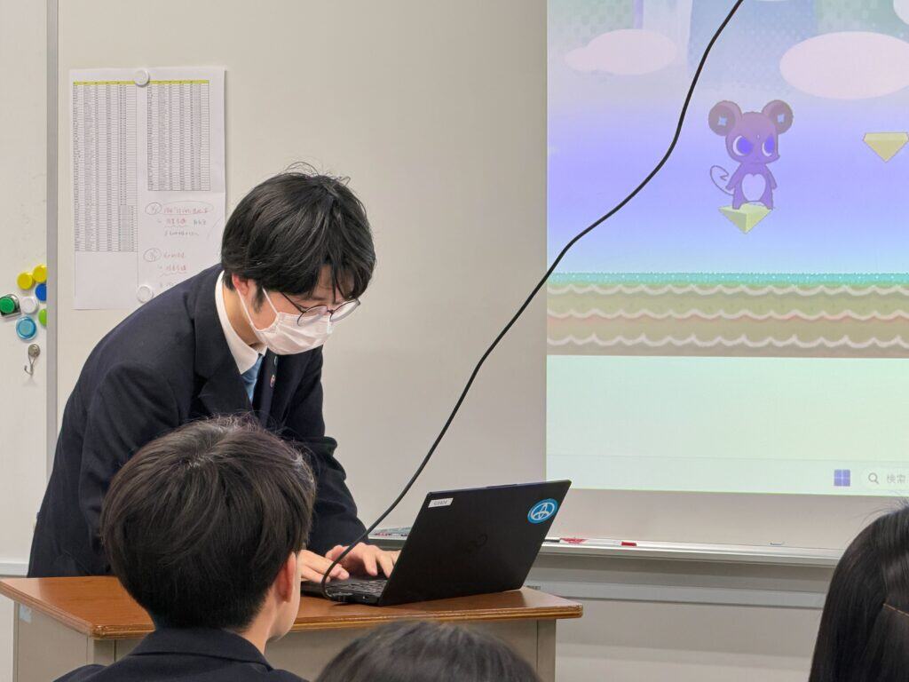 講座では、プログラミングの基礎を学びながら、オリジナルの簡単なゲーム制作にチャレンジしました。