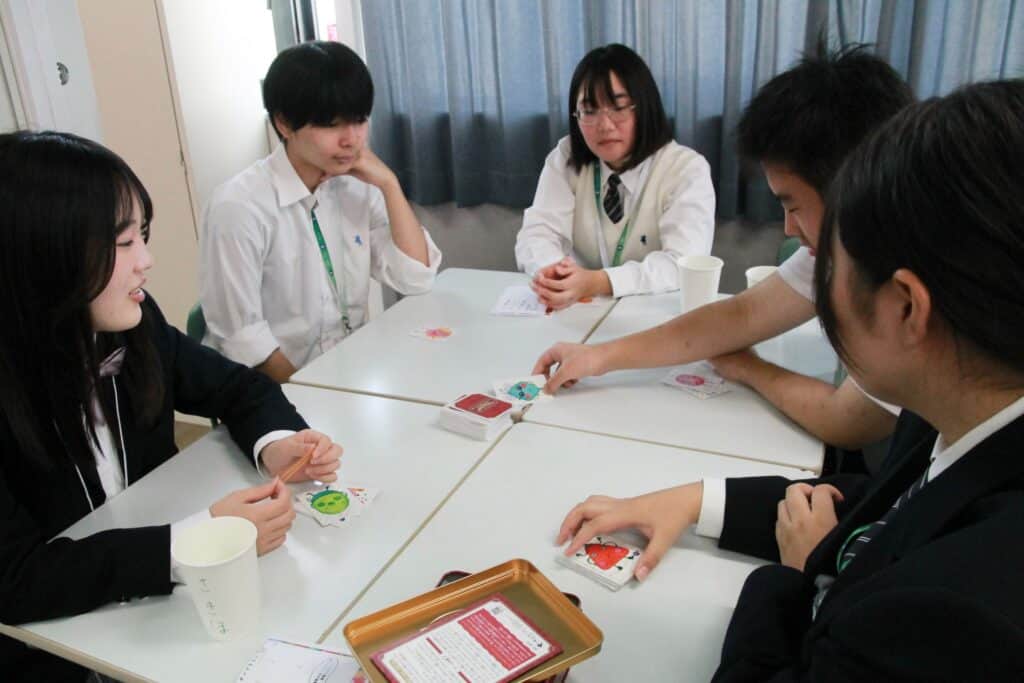 テーブルには、みんなで買い出ししたお菓子やジュースがずらり。好きなスナックを片手に、ボードゲームがスタートすると、教室中は大盛り上がり!思わず歓声が上がったり、笑い声が響いたり、普段の授業では見られない表情がたくさんありました。