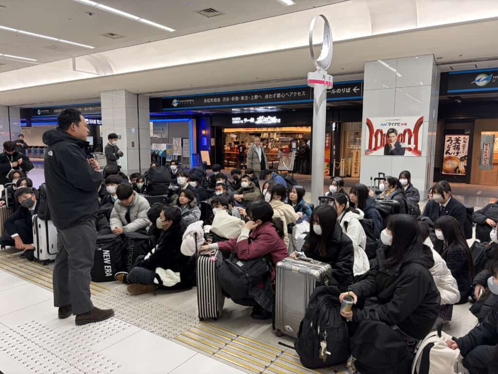 1学年は初めての宿泊行事ということで、ワクワクと不安のなか、羽田空港から元気の泉キャンパスへ出発しました。北海道へ到着すると一面の銀世界に興奮した生徒は早速、雪遊びをして北海道ならではの自然を満喫していました。元気の泉キャンパス到着後は明日から行われるスキー実習に向けて板やブーツの準備を済ませ、学年の親睦を深めようと実行委員がレクリエーションを企画してくれて大盛り上がりで1日目を終えました。明日からはいよいよスキー実習です。頑張っていきましょう!