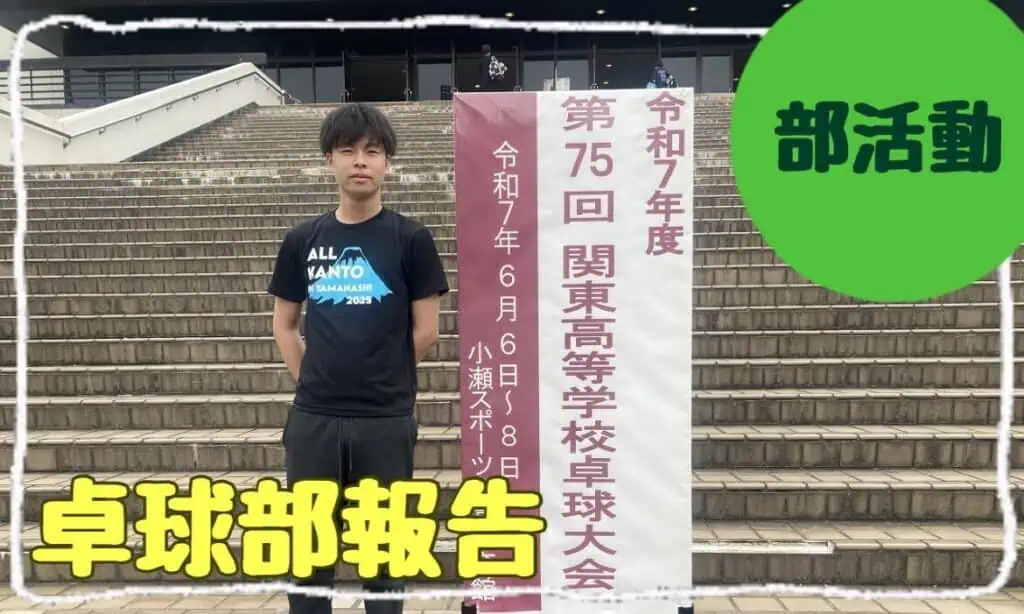 6月6日(金)~8日(日)山梨県甲府市の小瀬スポーツ公園体育館にて「令和7年度 第75回関東高等学校卓球大会」が開催され、男子シングルスの部に神奈川県予選を突破した柏木夏音さん(2年)が参加してきました。