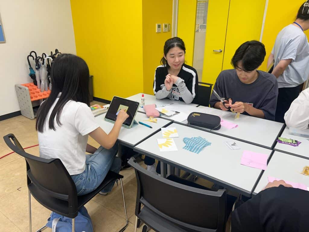 それでも生徒たちは他キャンパスの仲間と協力し合い、笑顔で活動。真剣に意見を交わしながらも、楽しそうにポストカードを作ったり、ユニークなCMを撮影したりする姿が印象的でした。