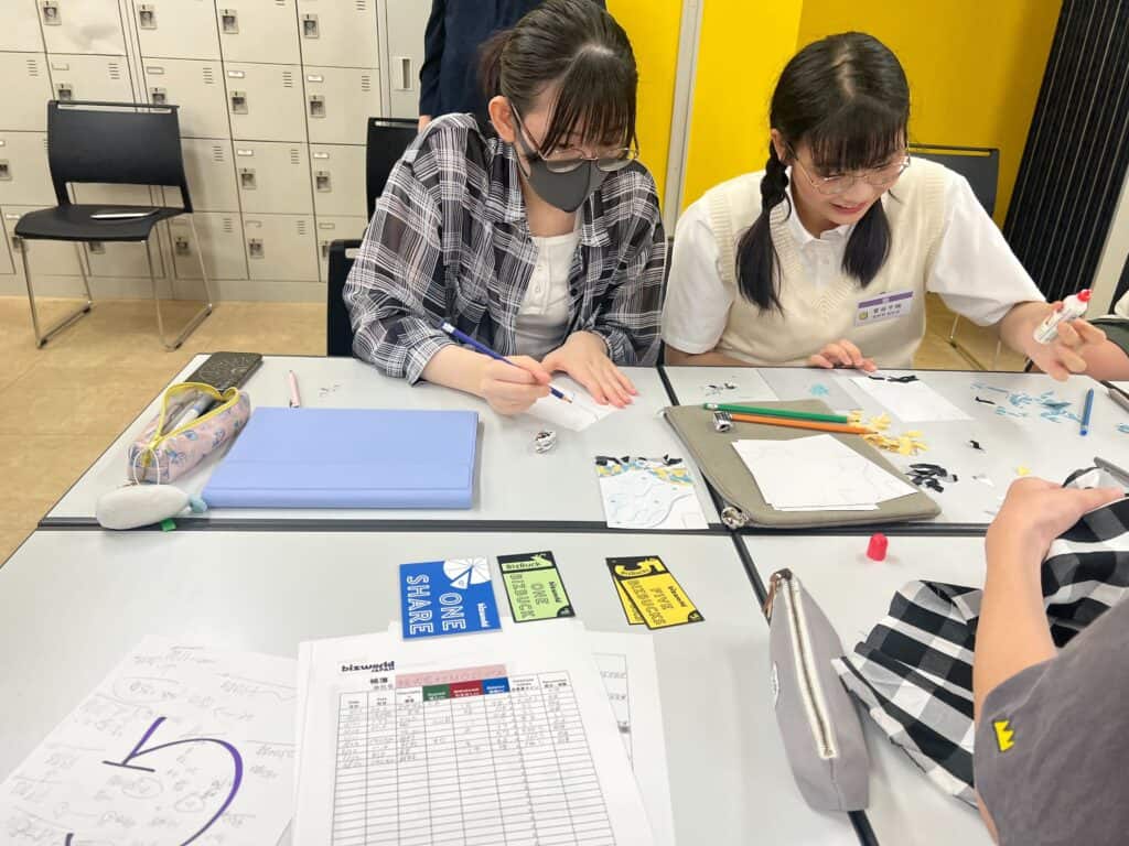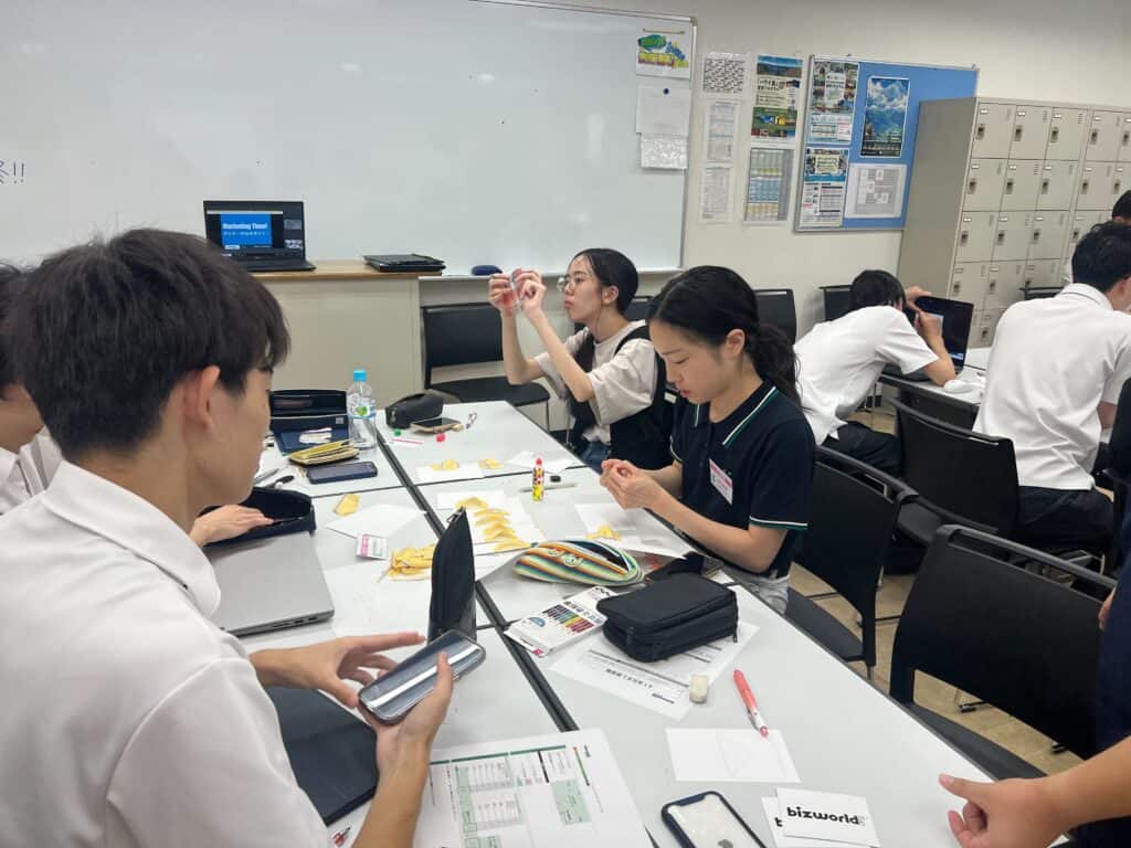 今回のテーマは「模擬会社づくり」。生徒たちはいくつかのグループに分かれて、それぞれが1つの会社を立ち上げました。役割も社長・財務・デザイン・生産・マーケティング・営業といった本格的な分担。製品はすべて「ポストカード」ですが、同じ商品を扱うからこそ、価格設定やデザイン、使いやすさで他社とどう差別化するかが大きなポイントとなりました。