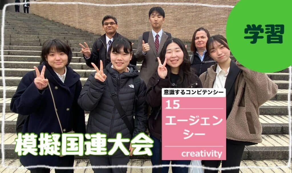 今回は模擬国連大会に参加しました。本校では、通常授業の一環として「模擬国連」に取り組んでおり、日頃からネイティブ教員との英会話を通して、英語で意見を伝え、議論する力を養ってきました。今回参加したJMMUN(Japan Metropolitan Model United Nations)は、洗足学園が主催する中高生向けの大会であり、これまでの学びの成果を実践の場で発揮する機会となりました。大会は2日間にわたって行われ、1日目は各自が担当する国の立場に立ち、その国が抱える課題や解決策について議論を行いました。生徒たちは、自国の利益だけでなく国際的な視点を踏まえながら発言し、他国の代表と意見を交わしていました。その後、エリアごとに分かれて周辺諸国と協議を重ねる中で、より広い視点から問題を捉え直し、他国の状況や課題について理解を深める姿が見られました。外部の生徒と英語で積極的に交流する経験は、自身の英語力を試す貴重な機会であると同時に、新たな関係性を築くきっかけにもなりました。異なる背景を持つ参加者と対話を重ねる中で、自分の考えを主体的に発信し、他者と協働して課題解決に向かう姿勢が育まれていました。今回の模擬国連への参加を通して、生徒たちは自ら考え、行動し、周囲に働きかけていく力、すなわちコンピテンシーである「エージェンシー」を実践的に高めることができました。この経験を今後の学びや社会との関わりの中で生かしていくことを期待しています。