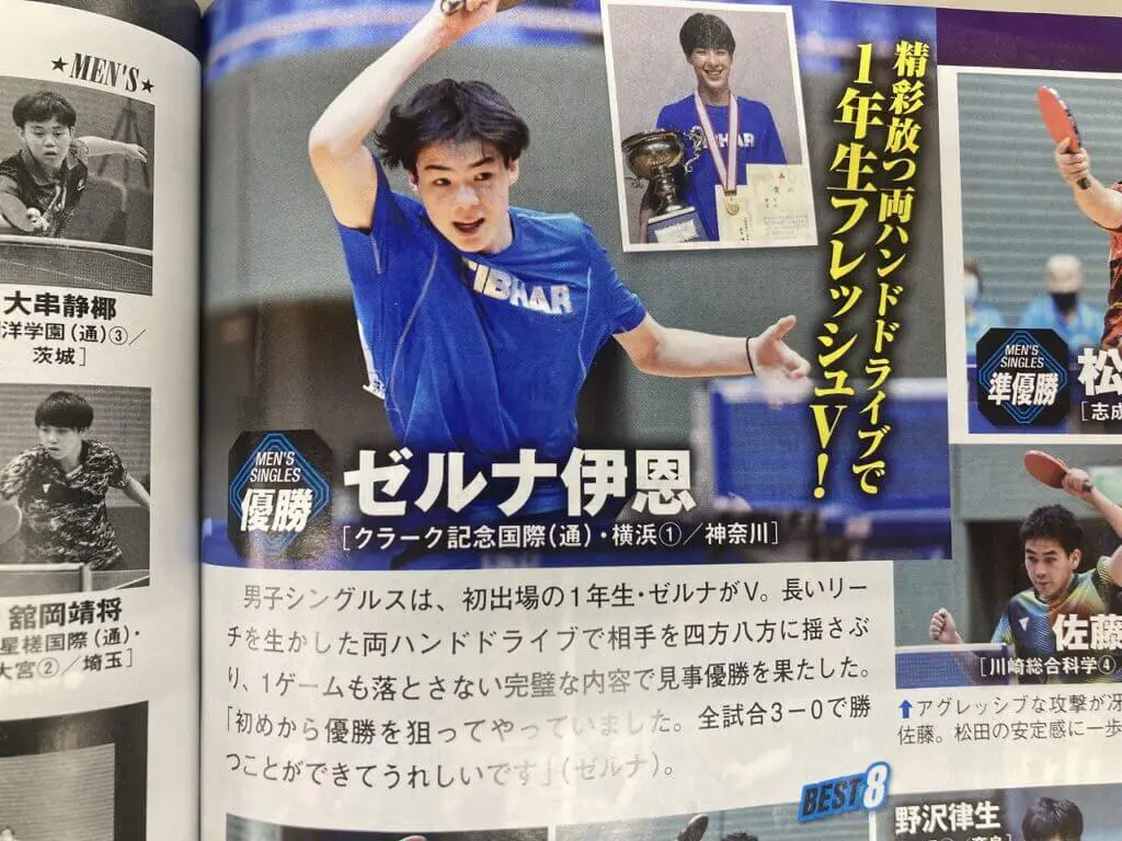 団体戦は第3位だったため写真のみの掲載ですが,シングルスについては選手のインタビューなども載っております。