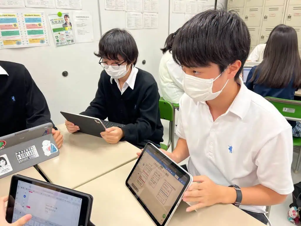 今回の授業では各グループが作った企画書のプレゼンテーションを行いました。プレゼンテーションと聞いて恐怖感を抱いてしまう生徒も多いのですが、今回はグループ間発表という形で実施し、まずは少人数の前で話すというステップを踏みました。実際に行ってみた生徒は「もっと相手が質問しやすいように話のテンポ感を意識したい。」といった感想も見られ、中間発表に向け良い練習となりました。社会をより良くするため、伸びしろのあるグループばかりです!今回のステップを経て、大きくジャンプできる後期としていきましょう!