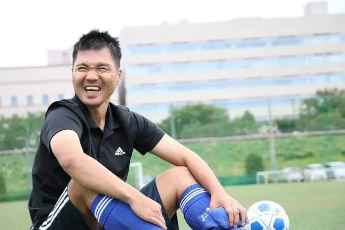 今回は、障がい当事者理解を目的に、元ブラインドサッカー日本代表選手の落合啓士さんにお越しいただき、講演型授業を行いました。落合さんは、10歳の頃から、徐々に視力が落ちる綱膜色素変性症にかかり、18歳で視覚障がい者になったとのこと。目が見えない事に絶望し、自ら命を絶つことを考えたことも。しかし、前向きに考えを改め25歳で、幼少期に取り組んでいたサッカーにもう一度出会い、熱中すると、2003年には日本代表に選出されました。2013年には、エースナンバー10番を背負い、キャプテンとしても代表チームを牽引してきました。現在は引退し、講演活動や松本山雅B.F.Cの監督、多文化共生社会の実現に向けた活動をしています。