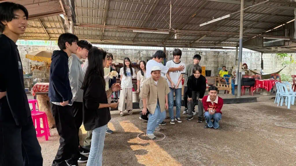今日は、先日出会った「坂雲寮」の生徒たちと、ラオスで大人気のスポーツ「ペタンク」を一緒にプレイしました。クラーク生と坂雲寮生の仲も、昨日よりさらに深まりました。