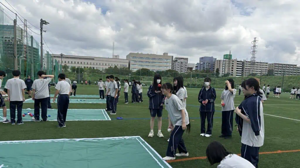 体育祭はあったものの、実は通常の学年体育は今年度はじめてだった1年生。雨予報も心配されましたが、今年の夏を思えば暑すぎない天候の中で、しんよこフットボールパークに集合しました!まずは新井先生プレゼンツウォーミングアップの鬼ごっこゲーム!その後はサッカー、ドッジボール、ボッチャの3つの中からやりたいスポーツを選んで、取り組みました!