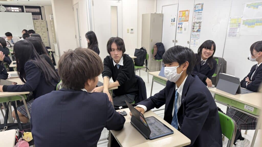 生徒たちは真剣な表情でスクールタクトにメモを取り、自分の進路を改めて考える時間に。