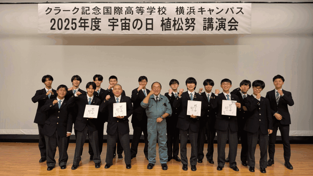 11月10日、宇宙の日を迎えた横浜キャンパスでは、株式会社植松電機代表の植松努さんをお招きし、「思うは招く」をテーマとした特別講演会を実施しました。ロケット開発の第一線で活躍する植松さんは、幼い頃に母から教わった「思うは招く(思うことで未来が動き出す)」という言葉を大切にしてきたと語り、生徒たちに「夢は大きさよりも数が大事。たくさん思い、たくさん喋るほど叶いやすくなる」と温かく伝えました。