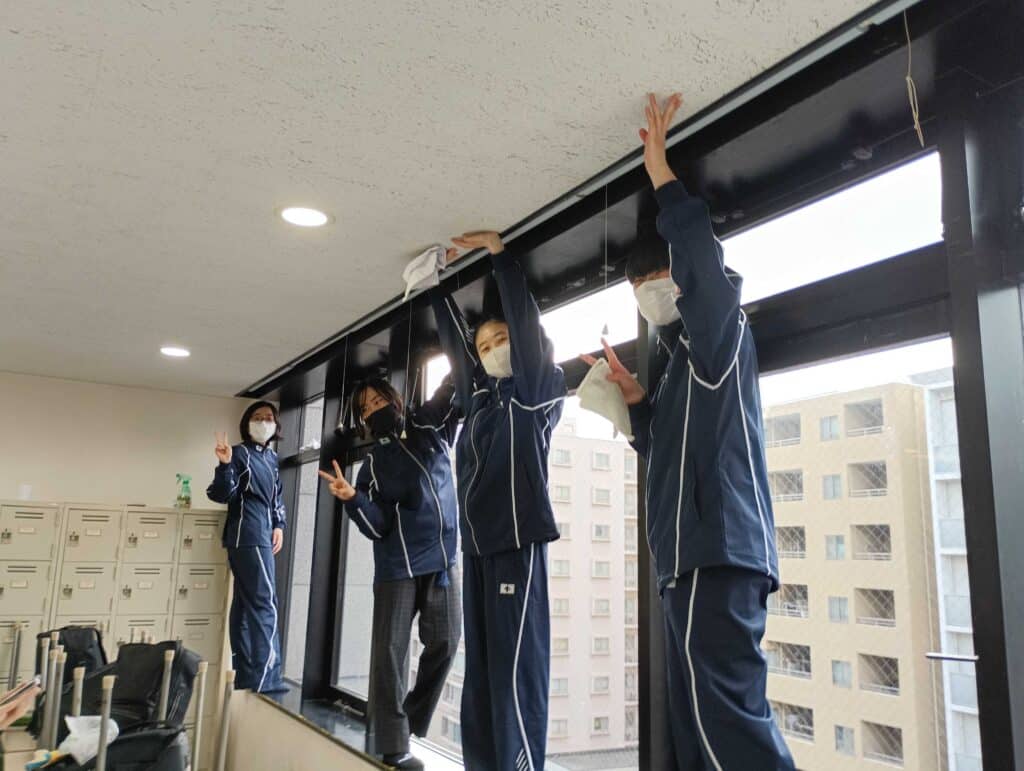 年内最後の登校日、1学年も他の学年と同様に、学年集会と大掃除を実施しました。学年集会ではまず、永井キャンパス長と新美先生のお話をききました。永井キャンパス長からは「来年1学舎では最高学年になる」という話もあり、2年生に向かっていく残りの期間に思いをはせる場面もありました。探究コンテストの準備を含む冬休みの宿題の話をきいたあとは、ジャージに着替え大掃除に精を出しました!日頃使っている机やいすの脚を拭いたり、皆でキュッキュと窓を吹き上げたり、トイレ掃除も隅々までピカピカに、「これぐらいでいいじゃんー。」とはならずに時間いっぱい、自分たちで役割を見つけながら、汚れたところを徹底的に掃除していきました!年末年始、自然と振り返る時間の多い季節です。家族とゆっくり過ごしたり、思い思いの冬休みを過ごしながら、大事に振り返りの時間をもって年明けに備えてください。次の登校日は1月9日。新美先生の話にもあったように、何よりこの日また皆の元気な顔を見られることを願っています!