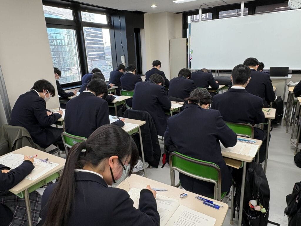 写真からも分かるように、教室内は静かな緊張感に包まれ、生徒一人ひとりが問題と真剣に向き合っていました。