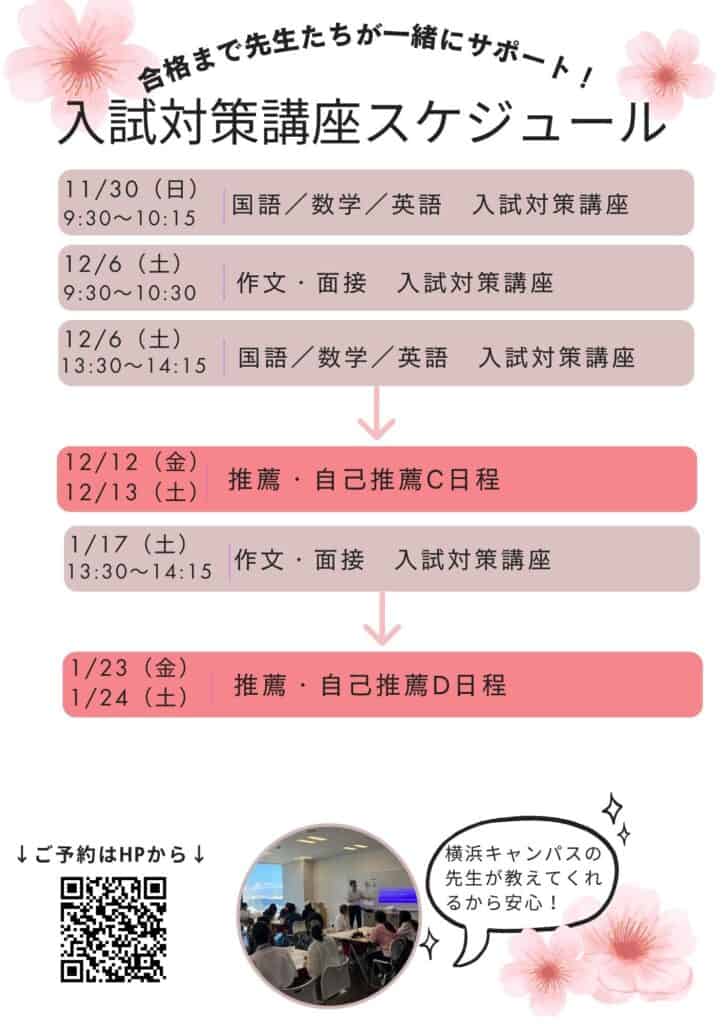12月6日(土)国語/数学/英語 入試対策講座(13:30~14:15)