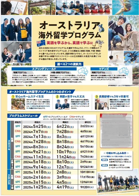 クラークのオーストラリア留学は、初めて海外に渡航する生徒もいることから、安心・安全かつ失敗の少ないよう設計されています。渡航の際は成田空港からクラークの教員が添乗することに加え、現地にはクラークの日本人教員が常駐しており、何かあった際には24時間体制でサポートしています。
