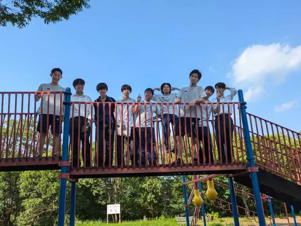 今回は、公園に行きグランドでボールを使ったスポーツや公園に設置されているアスレチック器具に挑戦など、時間の許す限り体を動かし、汗を流しています。生徒はタオルや飲み物を持参し熱中症対策を行いながらスポーツに励んでいました。
