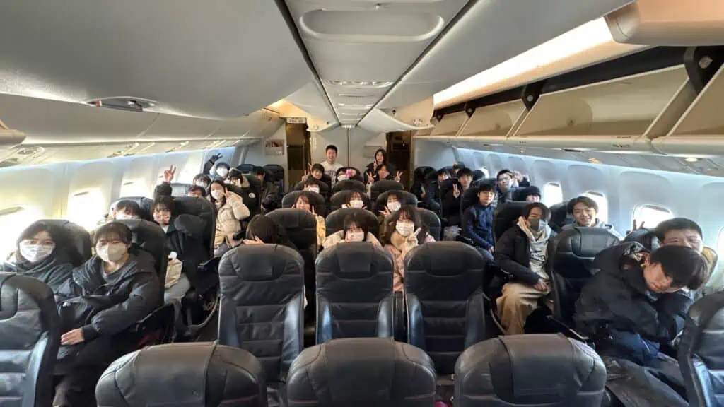 その一日目では、みんなで飛行機で北海道に向かい、元気の泉キャンパスでの過ごし方やスキーグッズのレンタルについて教えてもらいます。