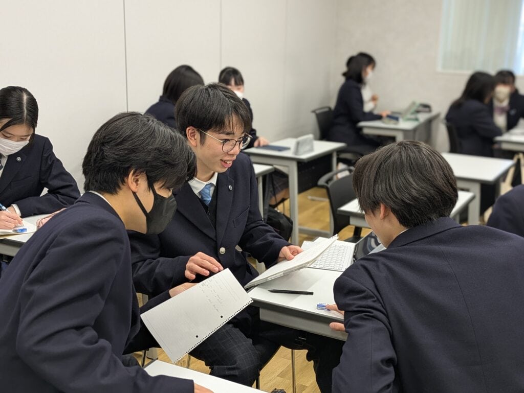 横浜青葉キャンパスでは希望者を対象に英会話のゼミ授業を行っています。ネイティブスピーカーの先生が担当し、自分が興味を持った社会問題について調べ英語でプレゼンテーションを作成する授業を行っています。今回はゼミを担当する先生が1学年の生徒に向けて英会話の特別授業を行ってくれました。2つの習熟度クラスに分かれてBasicクラスは日常で使う動詞をたくさん出し、英語での表現方法を学びました。また、Advancedクラスではペアやグループで会話のシチュエーションを考えてロールプレイを披露しました。短い準備時間でしたが、様々な場面を考えて全員の前で発表をすることができました。これからも失敗を恐れずに自分の考えや思いを自分の言葉で表現できるようになっていってほしいと思います。
