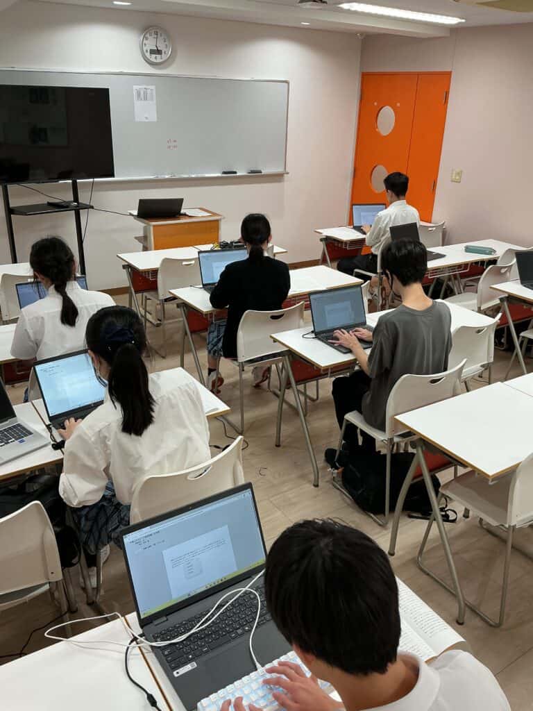 横浜青葉キャンパスにて、第2回文章入力スピード認定試験(日本語)を実施しました。この検定は受験申込を行い、試験当日に10分間全力で打ち込めば何かしらの級はもらえる試験となっております。10名以上申込者がいない場合は実施できない検定でしたが、第1回と同様に総合進学コースとスマートスタディコース併せて、11名の応募があり実施となりました。生徒たちは静かな教室でパソコンのキーを押す音だけが聞こえる中、タイピングに集中していました。