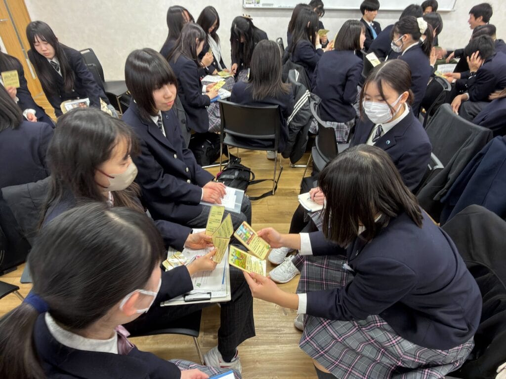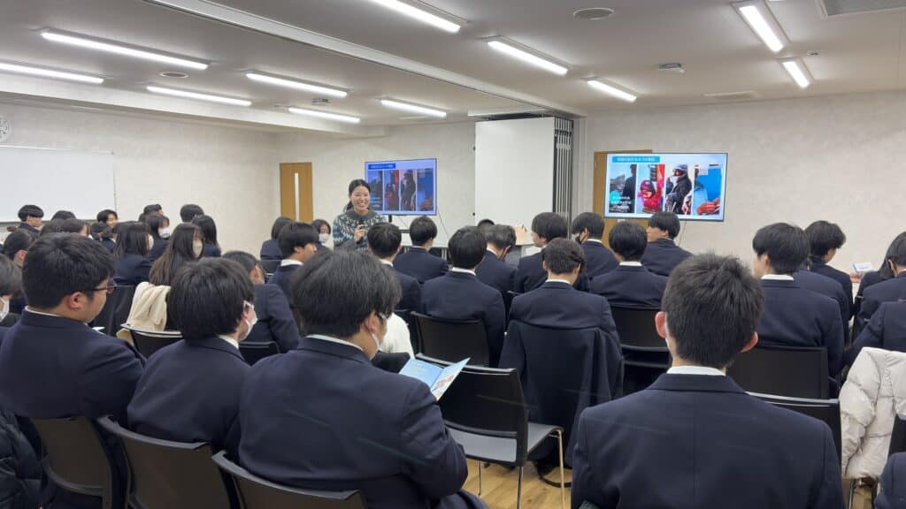 当日は、国連WFP(世界食糧計画)の活動内容をはじめ、世界で起きている食料問題や貧困、紛争や気候変動が人々の生活に与える影響について、具体的な事例や写真を交えながら分かりやすくお話しいただきました。グループワークでは、生徒それぞれが、問題を抱えている村の村人となり自分事として考え、そこの人々の生活がWFPとの協力で改善されていく過程を学ぶことができました。普段の生活ではなかなか実感しにくい「世界の課題」を、現実のものとして考えるきっかけとなる内容でした。