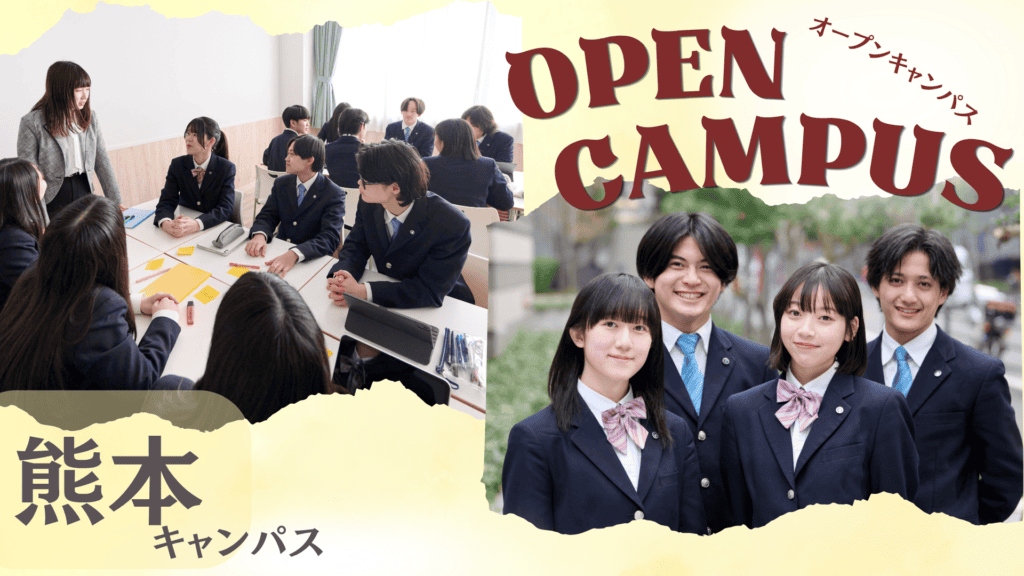 熊本キャンパスは、JR豊肥線「水前寺駅」からのアクセスも便利で、キャリアデザインやスマートスタディなどの多彩なコースを提供。地域との連携を活かし、実践的なスキルを育む環境が整っています。