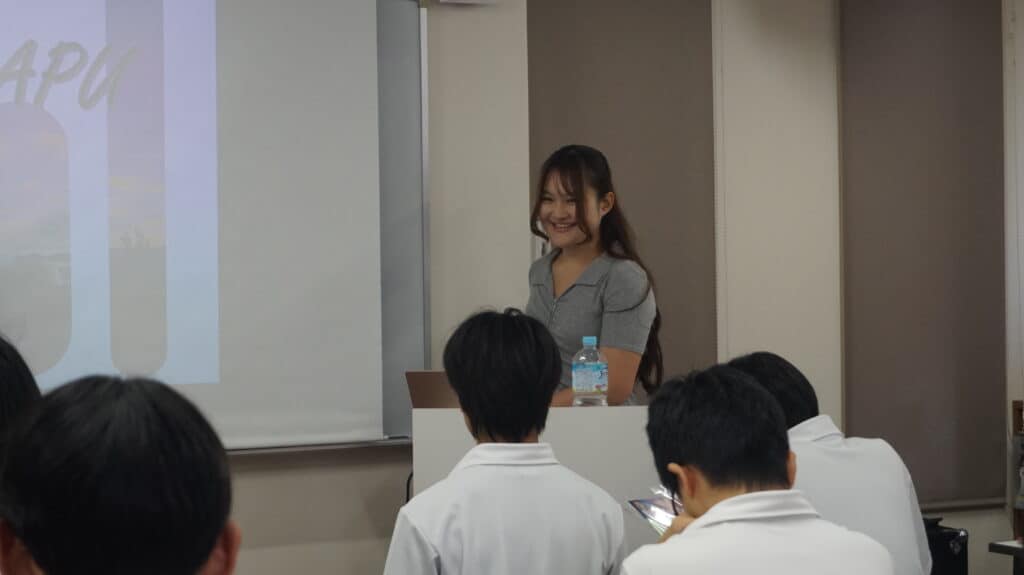 卒業生の北彩乃さんからは、APUでの国際色豊かな学びや、寮のリアルな大学生活、そしてクラークでの高校生活がどのように今の学びに繋がっているかなど、多岐にわたるお話がありました 。