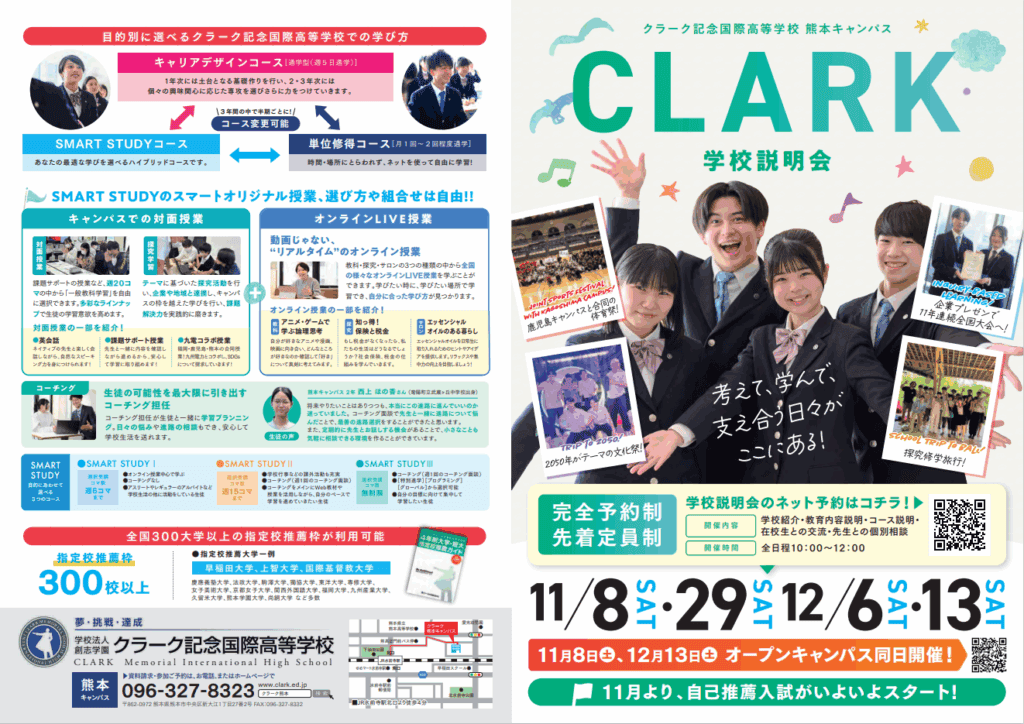【中3生対象】╲学校説明会でクラークを知る✨╱次回11月8日(土)ご予約受付中です!(熊本キャンパス)
