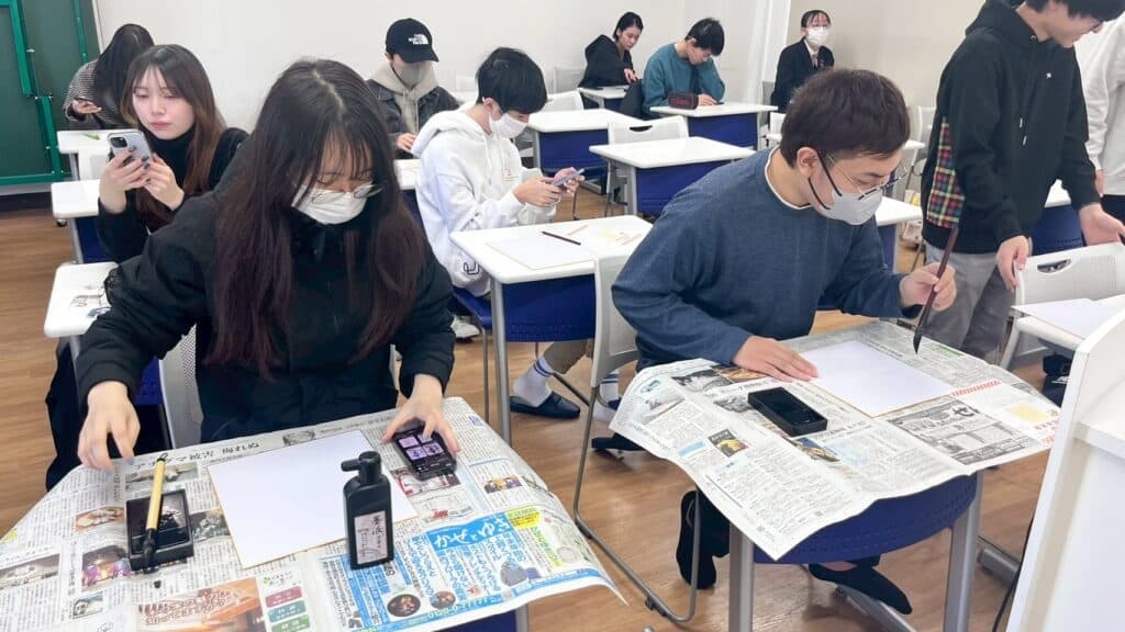 集中の一瞬🖌️真剣に筆を走らせる生徒たちの様子