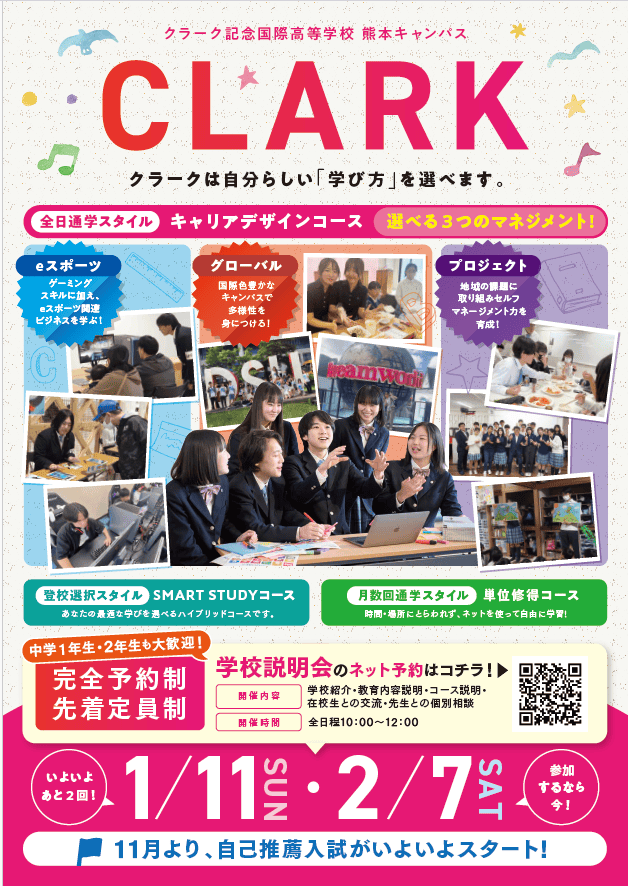 【中学生対象】╲学校説明会でクラークを知る✨╱2026年1月11日(日)ご予約受付中です!(熊本キャンパス)