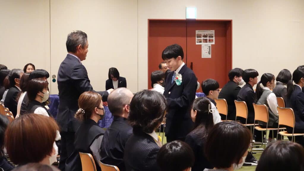 入学式には教員保護者だけでなく、総合進学コースに在籍する生徒も式に参列し、一緒に祝福しました?