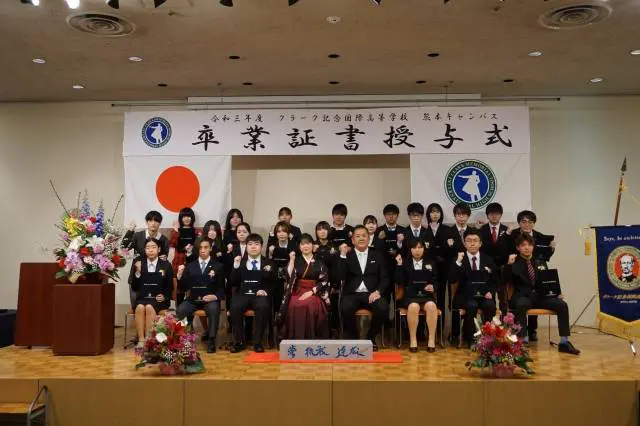 熊本県立劇場にて令和3年度卒業証書授与式を行いました。フレックス学習コース・WEB学習コースの生徒は、学校だけでなくプロを目指すための練習やアルバイトなど、その他の活動も両立しながらこれまで高校生活を送ってきました。両立させながら高校生活は、それぞれ大変だったと思いますが、みんな本当によく頑張りました。次のステージでの活躍を期待しています。