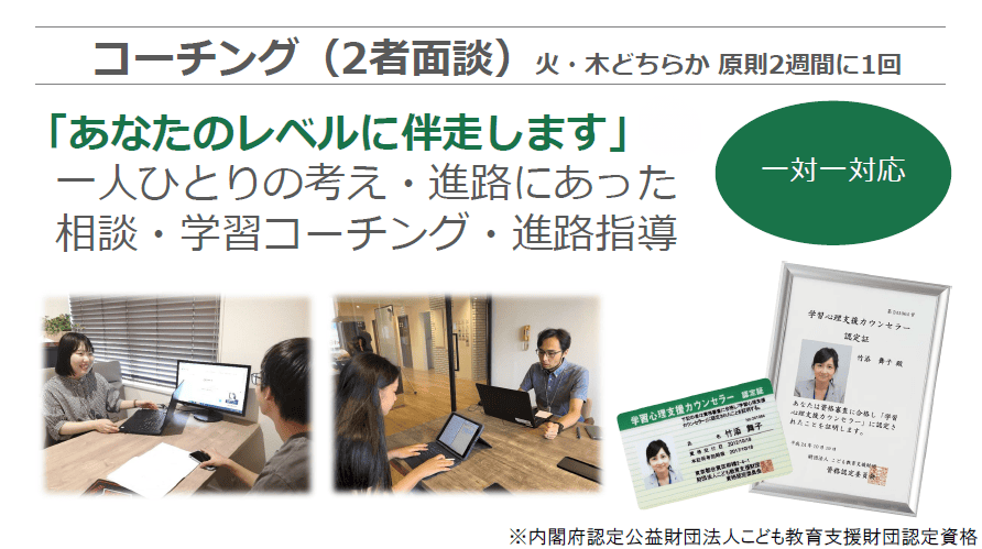 自律学習日には、学習心理支援カウンセラーの資格を持つ教員が、生徒一人ひとりとコーチング面談を実施。進路や学習方法についての相談を通じて、自分らしい学び方を見つけていきます。